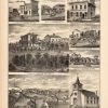 This black and white engraving was issued as part of the “Illustrated Historical Atlas of the State of Minnesota,” published in 1874 by A. T. Andreas, Chicago, Illinois. This image captures the romantic history of many important homes, businesses, farms and landmarks in 1874 Minnesota. The residences of Edward Nixon, J.N. Hair, Tonnes Hansen, and J.H. Rinderknectt are shown. Also included is the Hotel of C.T. Brockway, Frank Holmes Dealer, the Town of Eyota, and German EV. Lutheran Immanuel Church.