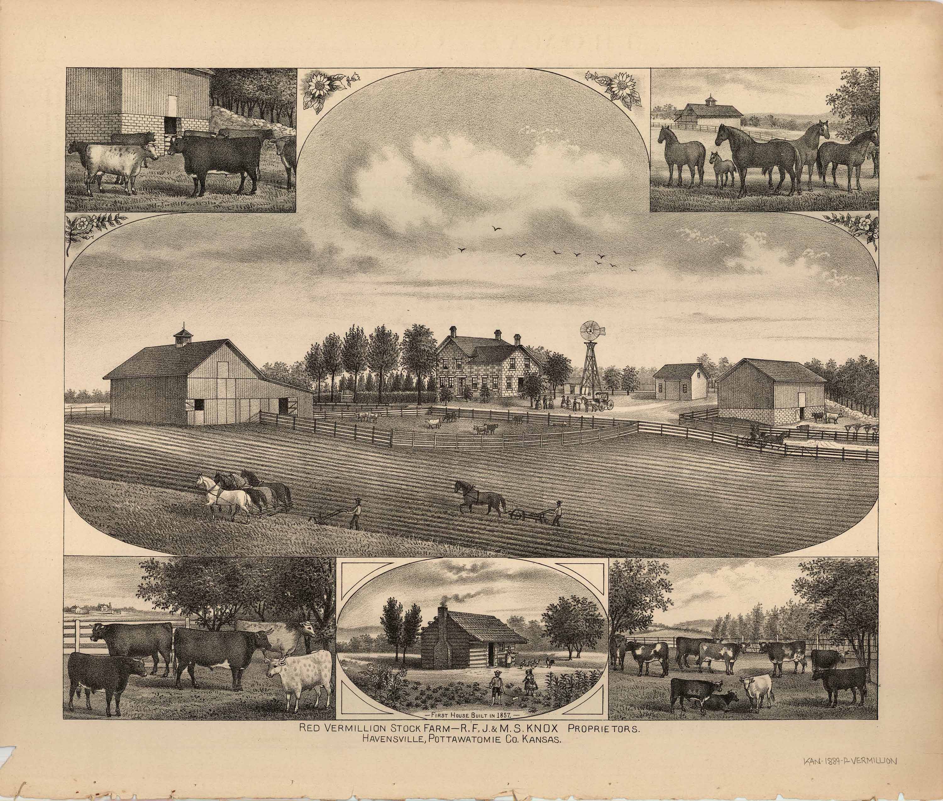 L.H. Evert’s 1887 Map of Red Vermillion Stock Farm – R. F. J. & M. S. Knox Proprietors. Havensville, Pottawatomie Co. Kansas