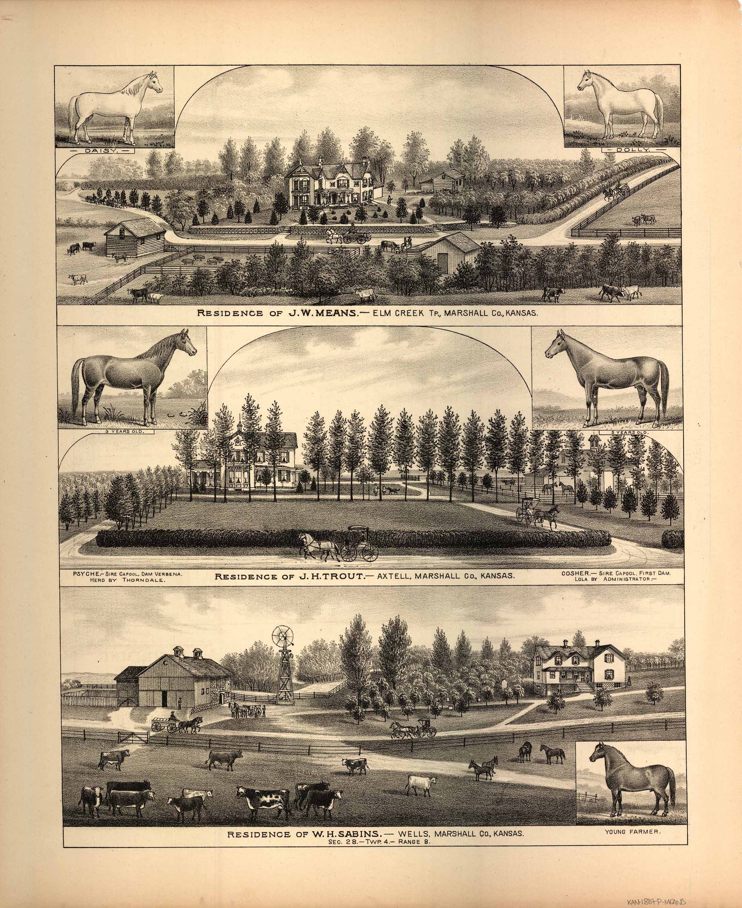 L.H. Evert’s 1887 Map of Residence of J.W. Means / Residence of J.H. Trout / Residence of W.H. Sabins