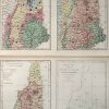 This hand colored map is from H.F.Walling’s Atlas of the State of New Hampshire, printed in 1877. The distribution of trees, agricultural areas, climate, and triangularation are illustrated on these four maps of the states of New Hampshire. Details include city and state names,identification of geographical features such as lakes,hills and rivers, and a zoning grid. This local map would make a great gift for a resident of the area.