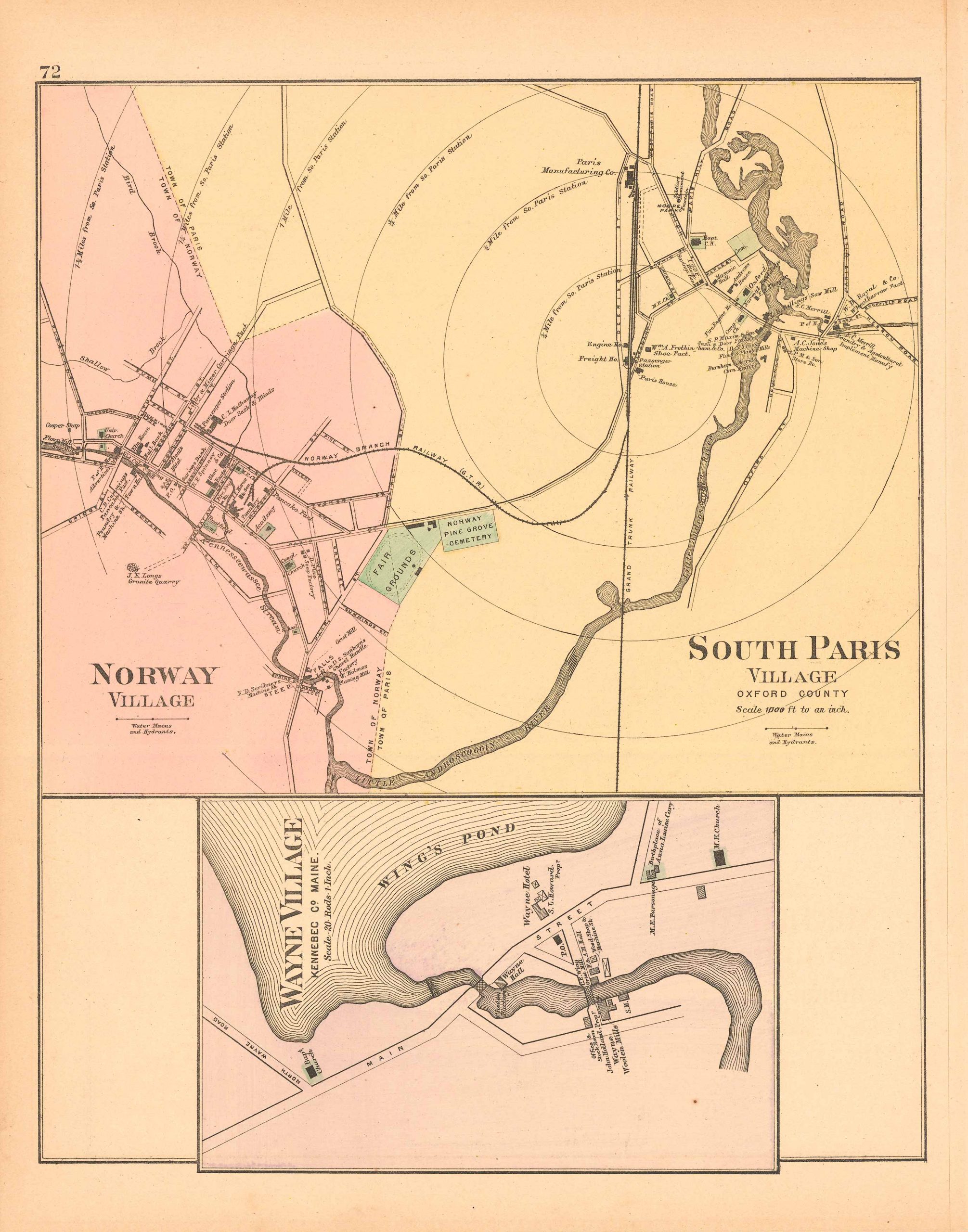 Stuarts 1890 Maps of Norway Village and South Paris Village of Oxford County and Wayne Village of Kennebec County