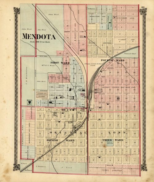 This detailed map/view is from the “Atlas of Lasalle Co. and the State of Illinois”, published in 1876 by Warner & Beers. This map/view gives a very interesting glimpse of Lasalle County and points beyond over 130 years ago. Property owners and prominent buildings are indicated.
