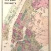 This map is from the Atlas of New York and Vicinity by F.W. Beers, A.D. Ellis and G.G. Soules, printed in 1867. Any resident of the featured area will appreciate the window into another time offered by these maps- making them fantastic gifts. All maps show great detail and are hand colored in bright pastels. This map illustates the street plans of Manhattan and Brooklyn with lesser detail of Queens showing the areas once occupied by swamp land.