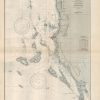 This coastal survey was printed by the U.S. Navy Hydrographic Office in Washington D.C. Details include the names of cities and waterways along the coast. Depth soundings are shown in fathoms. Other details that maybe included are lighthouses and buoy positions.