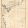 This coastal survey was printed by the U.S. Navy Hydrographic Office in Washington D.C. Details include the names of cities and waterways along the coast. Depth soundings are shown in fathoms. Other details that maybe included are lighthouses and buoy positions.