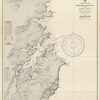 This coastal survey was printed by the U.S. Navy Hydrographic Office in Washington D.C. Details include the names of cities and waterways along the coast. Depth soundings are shown in fathoms. Other details that maybe included are lighthouses and buoy positions.