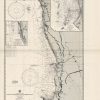 This coastal survey was printed by the U.S. Navy Hydrographic Office in Washington D.C. Details include the names of cities and waterways along the coast. Depth soundings are shown in fathoms. Other details that maybe included are lighthouses and buoy positions.