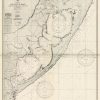 This coastal survey was printed by the U.S. Navy Hydrographic Office in Washington D.C. Details include the names of cities and waterways along the coast. Depth soundings are shown in fathoms. Other details that maybe included are lighthouses and buoy positions.