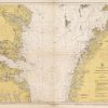This coastal survey, produced in 1950, shows Chesapeake Bay- Wolf Trap to Smith Point. It was made by the United States Coast and Geodetic Survey. These surveys provide notes on important characteristics, including depth readings, and names of harbors, rivers, and coastal towns. The charts illustrate areas that have likely undergone significant changes due to modifications and recessions of coastal lands, making them fascinating to anyone interested in local geography and history.