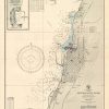 This coastal survey was printed by the U.S. Navy Hydrographic Office in Washington D.C. Details include the names of cities and waterways along the coast. Depth soundings are shown in fathoms. Other details that maybe included are lighthouses and buoy positions.