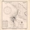 This coastal survey was printed by the U.S. Navy Hydrographic Office in Washington D.C. Details include the names of cities and waterways along the coast. Depth soundings are shown in fathoms. Other details that maybe included are lighthouses and buoy positions.