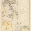 This coastal survey was printed by the U.S. Navy Hydrographic Office in Washington D.C. Details include the names of cities and waterways along the coast. Depth soundings are shown in fathoms. Other details that maybe included are lighthouses and buoy positions.