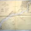 This Coastal survey was made in Washington D.C. on February 12, 1945 by the U.S.Coast and Geodetic Survey department. The Delawre River from Willmington to Philadelphia including the coasts of Delaware, New Jersey, and Pennsylvania, is illustrated on this map. Details include the names of creeks and rivers, depth readings, bridges, important buildings along the coast,railroads, cable areas, and the names of some cities. Most recent corrections, buoys, beacons, and lights are hand stamped on the map Notes on the map read: Caution Improved Channels- The side limits of the improvement are shown by broken lines. The controlling depth through the channel, on the date given, is placed in or alongside the channel, or in a seperate note, but no depth greater than the project depth is given. Because of possible shoaling, particularly at the edges, it must not be inferred that the depth stated exsisted throughout the entire width of the improvement on the date of the examination unless so stated, or that it has not since decreased in places across the entire width.