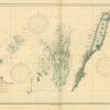 This coastal survey was printed by the U.S. Navy Hydrographic Office in Washington D.C. Details include the names of cities and waterways along the coast. Depth soundings are shown in fathoms. Other details that maybe included are lighthouses and buoy positions.