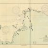 This coastal survey was printed by the U.S. Navy Hydrographic Office in Washington D.C. Details include the names of cities and waterways along the coast. Depth soundings are shown in fathoms. Other details that maybe included are lighthouses and buoy positions.