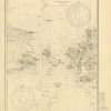 This coastal survey was printed by the U.S. Navy Hydrographic Office in Washington D.C. Details include the names of cities and waterways along the coast. Depth soundings are shown in fathoms. Other details that maybe included are lighthouses and buoy positions.