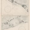 This coastal survey was printed by the U.S. Navy Hydrographic Office in Washington D.C. Details include the names of cities and waterways along the coast. Depth soundings are shown in fathoms. Other details that maybe included are lighthouses and buoy positions.