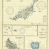 This coastal survey was printed by the U.S. Navy Hydrographic Office in Washington D.C. Details include the names of cities and waterways along the coast. Depth soundings are shown in fathoms. Other details that maybe included are lighthouses and buoy positions.