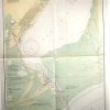 This coastal survey was stamped as complete in Washington D.C. by the U.S. Coast and Geodetic Survey on January 6, 1945. Sabine Pass and Lake on the Louisiana and Texas coasts is illustrated on this map. Details include the names of waterways and some cities along the coast. Notes on the map read: Caution: Temporary changes affecting Lights, Buoys and Day Beacons Aides which have been destroyed or removed, but which will be reestablished and are temporarily replaced by aids of different characteristics, are indicated in color by the following abbreviations… Caution: Improved Channels The side limits of the improvement are shown by broken lines. The legend gives the controlling depth through the channel ascertained on the dates stated. Because of possible shoaling, particularly at the edges, it must not be inferred that the depths stated existed throughout the entire width of the improvement on the date of the examination unless so stated, or that it has not since decreased in places across the entire width. Warning: Aids to navigation may be altered, interrupted or removed without notice. In general, temporary changes due to war conditions are not incorporated on the chart.