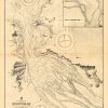 This coastal survey was printed by the U.S. Navy Hydrographic Office in Washington D.C. Details include the names of cities and waterways along the coast. Depth soundings are shown in fathoms. Other details that maybe included are lighthouses and buoy positions.