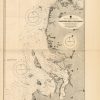 This coastal survey was printed by the U.S. Navy Hydrographic Office in Washington D.C. Details include the names of cities and waterways along the coast. Depth soundings are shown in fathoms. Other details that maybe included are lighthouses and buoy positions.