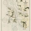 This coastal survey was printed by the U.S. Navy Hydrographic Office in Washington D.C. Details include the names of cities and waterways along the coast. Depth soundings are shown in fathoms. Other details that maybe included are lighthouses and buoy positions.
