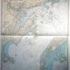 This coastal survey was stamped as complete in Washington D.C. by the U.S. Coast and Geodetic Survey on January 4, 1945. Salem and Lynn Harbors are illustrated on this map. Partial street plans for important cities along the coast are provided. An inset shows the Broad Sound. Details include the names of waterways and some cities along the coast. Cable, pipeline, and restricted areas are stamped on the map. Notes on the map read: Caution: Temporary changes affecting Lights, Buoys and Day Beacons Aides which have been destroyed or removed, but which will be reestablished and are temporarily replaced by aids of different characteristics, are indicated in color by the following abbreviations… Caution: Improved Channels The side limits of the improvement are shown by broken lines. The legend gives the controlling depth through the channel ascertained on the dates stated. Because of possible shoaling, particularly at the edges, it must not be inferred that the depths stated existed throughout the entire width of the improvement on the date of the examination unless so stated, or that it has not since decreased in places across the entire width. Warning: Aids to navigation may be altered, interrupted or removed without notice. In general, temporary changes due to war conditions are not incorporated on the chart.