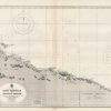 This coastal survey was printed by the U.S. Navy Hydrographic Office in Washington D.C. Details include the names of cities and waterways along the coast. Depth soundings are shown in fathoms. Other details that maybe included are lighthouses and buoy positions. These World War 2 maps have become very difficult to find.