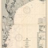 This coastal survey was printed by the U.S. Navy Hydrographic Office in Washington D.C. Details include the names of cities and waterways along the coast. Depth soundings are shown in fathoms. Other details that maybe included are lighthouses and buoy positions.