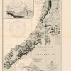 This coastal survey was printed by the U.S. Navy Hydrographic Office in Washington D.C. Details include the names of cities and waterways along the coast. Depth soundings are shown in fathoms. Other details that maybe included are lighthouses and buoy positions.