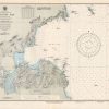 This coastal survey was printed by the U.S. Navy Hydrographic Office in Washington D.C. Details include the names of cities and waterways along the coast. Depth soundings are shown in fathoms. Other details that maybe included are lighthouses and buoy positions.