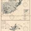 This coastal survey was printed by the U.S. Navy Hydrographic Office in Washington D.C. Details include the names of cities and waterways along the coast. Depth soundings are shown in fathoms. Other details that maybe included are lighthouses and buoy positions.