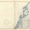This coastal survey was printed by the U.S. Navy Hydrographic Office in Washington D.C. Details include the names of cities and waterways along the coast. Depth soundings are shown in fathoms. Other details that maybe included are lighthouses and buoy position