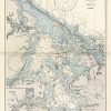 This coastal survey was printed by the U.S. Navy Hydrographic Office in Washington D.C. Details include the names of cities and waterways along the coast. Depth soundings are shown in fathoms. Other details that maybe included are lighthouses and buoy positions.