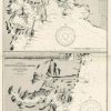 This coastal survey was printed by the U.S. Navy Hydrographic Office in Washington D.C. Details include the names of cities and waterways along the coast. Depth soundings are shown in fathoms. Other details that maybe included are lighthouses and buoy positions.