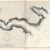 This coastal survey was printed by the U.S. Navy Hydrographic Office in Washington D.C. Details include the names of cities and waterways along the coast. Depth soundings are shown in fathoms. Other details that maybe included are lighthouses and buoy positions.