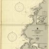 This coastal survey was printed by the U.S. Navy Hydrographic Office in Washington D.C. Details include the names of cities and waterways along the coast. Depth soundings are shown in fathoms. Other details that maybe included are lighthouses and buoy positions.