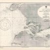This coastal survey was printed by the U.S. Navy Hydrographic Office in Washington D.C. Details include the names of cities and waterways along the coast. Depth soundings are shown in fathoms. Other details that maybe included are lighthouses and buoy positions.