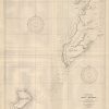 This coastal survey was printed by the U.S. Navy Hydrographic Office in Washington D.C. Details include the names of cities and waterways along the coast. Depth soundings are shown in fathoms. Other details that maybe included are lighthouses and buoy positions.