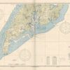 This coastal survey was printed by the U.S. Navy Hydrographic Office in Washington D.C. Details include the names of cities and waterways along the coast. Depth soundings are shown in fathoms. Other details that maybe included are lighthouses and buoy positions.