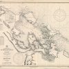This coastal survey was printed by the U.S. Navy Hydrographic Office in Washington D.C. Details include the names of cities and waterways along the coast. Depth soundings are shown in fathoms. Other details that maybe included are lighthouses and buoy positions.