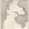 This coastal survey was printed by the U.S. Navy Hydrographic Office in Washington D.C. Details include the names of cities and waterways along the coast. Depth soundings are shown in fathoms. Other details that maybe included are lighthouses and buoy positions.