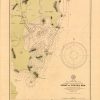 This coastal survey was printed by the U.S. Navy Hydrographic Office in Washington D.C. Details include the names of cities and waterways along the coast. Depth soundings are shown in fathoms. Other details that maybe included are lighthouses and buoy positions.