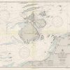 This coastal survey was printed in October, 1944 by the U.S. Navy Hydrographic Office in Washington D.C. Details include the names of cities and waterways along the coast. Depth soundings are shown in fathoms. Other details included are lighthouses and bouy positions.