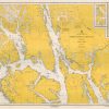 This coastal survey was printed by the U.S. Navy Hydrographic Office in Washington D.C. Details include the names of cities and waterways along the coast. Depth soundings are shown in fathoms. Other details that maybe included are lighthouses and buoy positions.