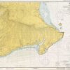 This coastal survey was printed by the U.S. Navy Hydrographic Office in Washington D.C. Details include the names of cities and waterways along the coast. Depth soundings are shown in fathoms. Other details that maybe included are lighthouses and buoy positions.