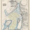 This coastal survey was printed by the U.S. Navy Hydrographic Office in Washington D.C. Details include the names of cities and waterways along the coast. Depth soundings are shown in fathoms. Other details that maybe included are lighthouses and buoy positions.