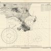 This coastal survey was printed by the U.S. Navy Hydrographic Office in Washington D.C. Details include the names of cities and waterways along the coast. Depth soundings are shown in fathoms. Other details that maybe included are lighthouses and buoy positions.