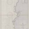 This coastal survey was printed by the U.S. Navy Hydrographic Office in Washington D.C. Details include the names of cities and waterways along the coast. Depth soundings are shown in fathoms. Other details that maybe included are lighthouses and buoy positions.