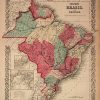 Art Source International is proud to offer this map from the 1868 edition of Coltons General Atlas. Colton atlases, especially those from the late 1860’s, have become increasingly rare. These well maintained examples are the first for sale by our store in eight years. The General Atlas was the first single edition atlas published by the Colton brothers succeeding the expensive two volume Atlas of the World. These maps have the signature ‘ inch Colton border surrounding each map. The Colton firm refused to compromise quality, choosing to compete for sales in the finer quality international market rather than the inexpensive domestic one. Because of this, all maps were engraved by steel plates rather than by wax engraving which was the most common method used at this time. This map of Brazil and Guayana with insets of Pernambuco and Rio de Janeiro is very detailed with identification of regions, important cities, rivers, lakes, mountain ranges, and railroad lines. Each map has beautiful muted red, green, tan, pink, and yellow hand coloring used to distinguish regions. ‘